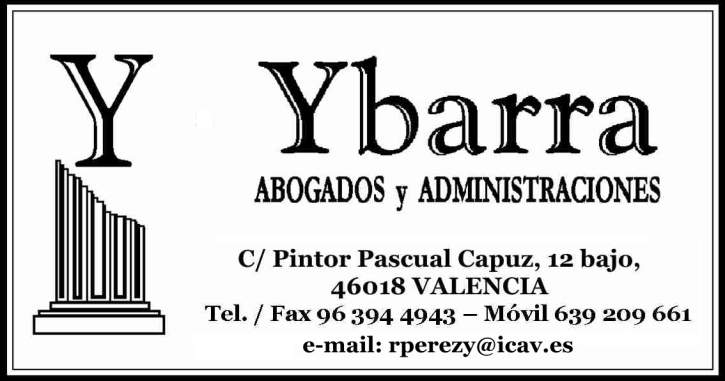 YBARRA C/ PINTOR PASCUAL CAPUZ 12- BAJO 46018 VALENCIA
